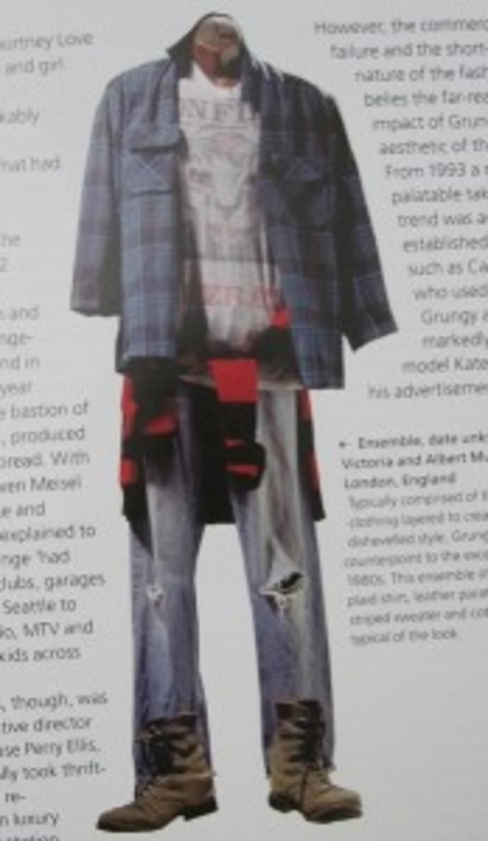Uz zavisnost od toga koju muziku ste slušali, u tom stilu ste se i oblačili. Momci su nosili pocepane, široke teksas pantalone, slojevito obučeni, flanelske karirane košulje, stare patike, vojničke čizme i ostavljali su utisak da ne mare za svoj sopstveni izgled.