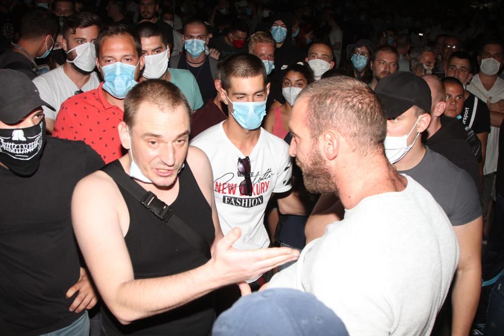 Na drugom delu skupa odjednom je počelo gadjanje flašicama vode, dogodio se i sukob, pri čemu su okupljeni vikali "Provokacija, provokacija" i "Koliko vas plaćaju!" U toj jurnjavi jedna grupica demonstranata je pobegla kroz park tako da se, kako javlja reporter Bete sa lica mesta, situacija smirila.