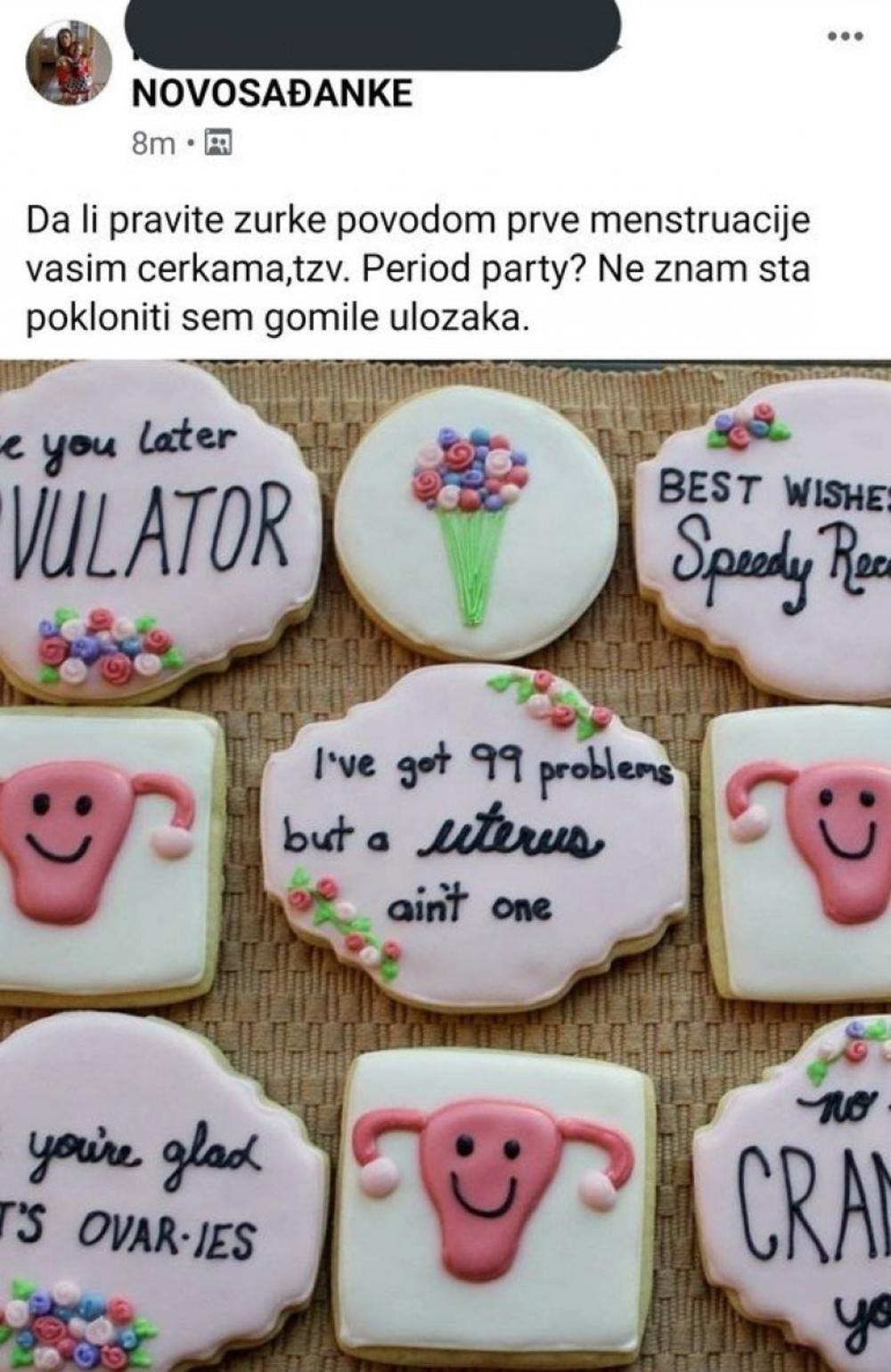 - Da li pravite žurke vašim ćerkama povodom prve menstruacije tzv. period party? Ne znam šta da poklonim, sem gomile ulošaka - zapitala se jedna žena u veoma posećenoj grupi na Fejsbuku.