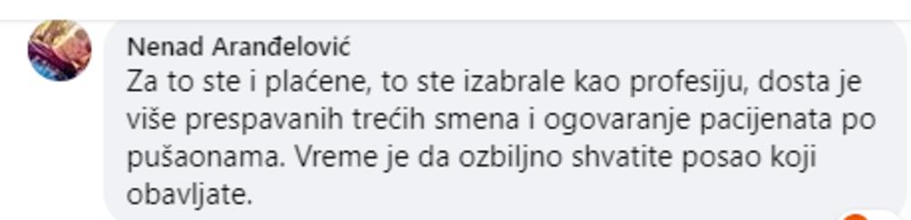Za to ste i plaćene, to ste izabrale kao profesiju, dosta je više prespavanih trećih smena i ogovaranje pacijenata po pušaonama. Vreme je da ozbiljno shvatite posao koji obavljate, napisao je jedan mladić.