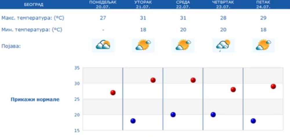 Dakle, do kraja jula nas očekuje par lepih i sunčanih dana bez velikih vrućina, ali biće i prolaznih pljuskova praćeni grmljavinom