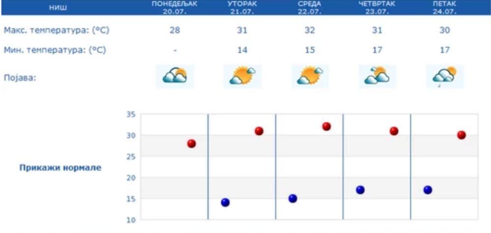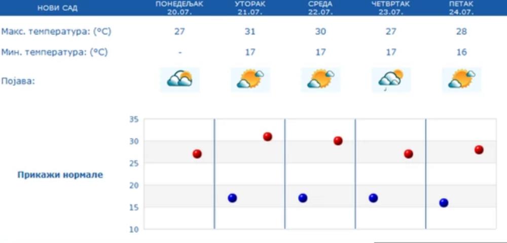 "Od sutra povratak lepšeg i znatno toplijeg vremena, u sredu maksimum ponegde i oko 33 stepena. U četvrtak blaže osveženje, a za vikend izgledno konkretnije osveženje. Za sada deluje da bi sve do kraja meseca, a možda i sam početak avgusta ostalo relativno sveže, uz povremene pljuskove. Tek negde oko 4. avgusta ima signala za konkretnije otopljenje, ali to je daleko van svih pouzdanih okvira simulacije", napisao je na svom Fejsbuk profilu profesor geografije iz Novog Sada i veliki zaljubljenik u meterologiju Marko Čubrilo.