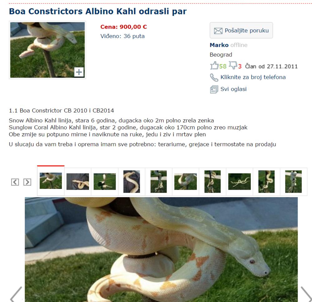 2. E ovo je za prave ekstreme! Zmija Boa, dugačka dva metra koja, kako kaže gazda - jede i živo i mrtvo, može se kupiti za 900 evra.