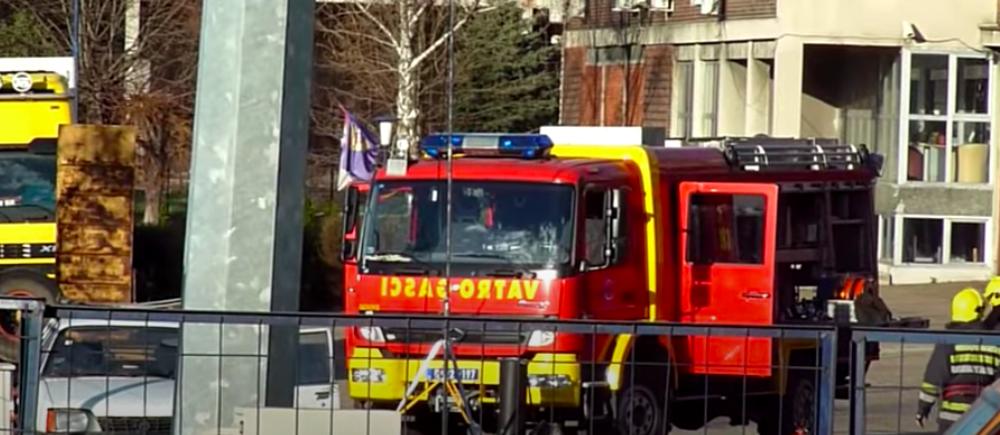 Na teren su izašli vatrogasci koji su naduvali dušek za spasavanje ispred zgrade, što se može videti i na fotografiji.