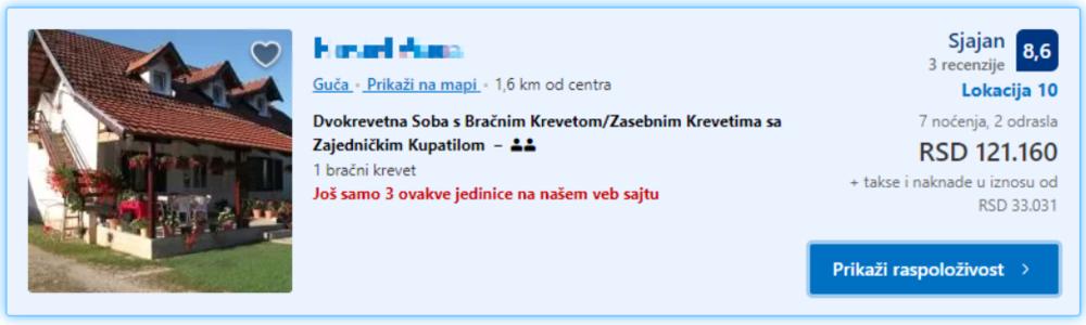 Ukoliko biste da posetite Guču, cena smeštaja za sedam noćenja za dve osobe se kreće od 16. 000 dinara do neverovatnih 120.000.