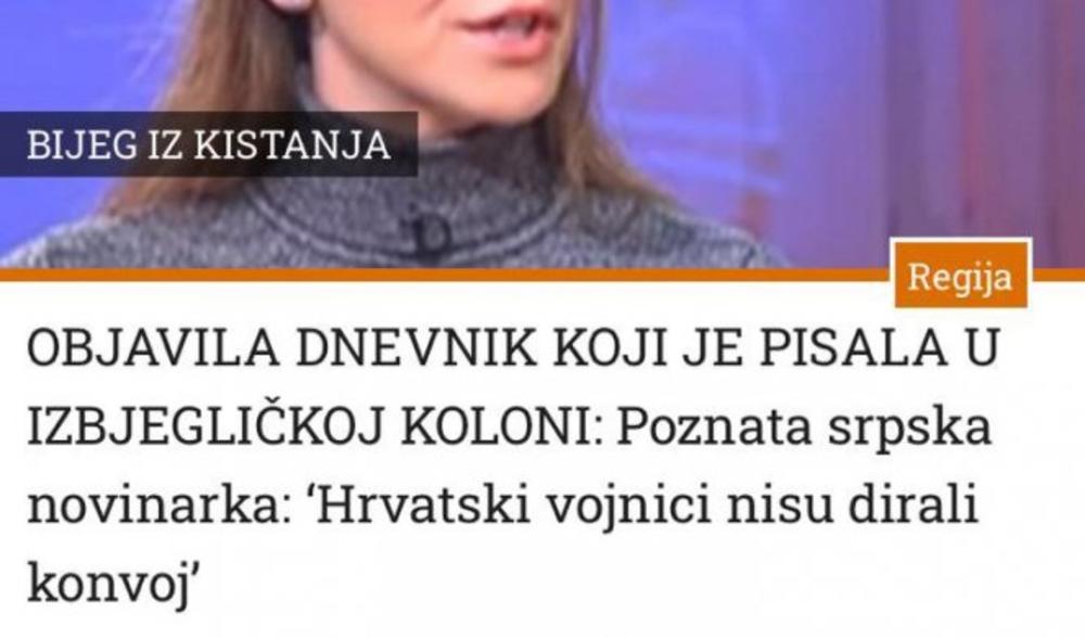 Tragična ispovest novinarke RTS, koja je avgusta 1995. u vreme progona Srba iz Hrvatske imala 17 godina, u kojoj opisuje strahote koje je doživela zajedno sa svojom porodicom i još 250.000 sunarodnika, privukla je veliku pažnju medija u Srbiji.