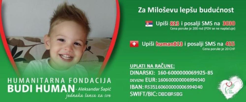 Kako dodaje, dobri ljudi pomogli su da se prikupi oko polovine novca koji je prijavljen Fondaciji “Budi human” za Miloša.