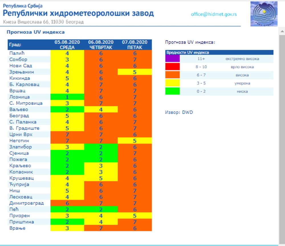 Prognoza UV indeksa je sa onih "opasnih 8" pao na niskih, umerenih, 1, 2 i 3.