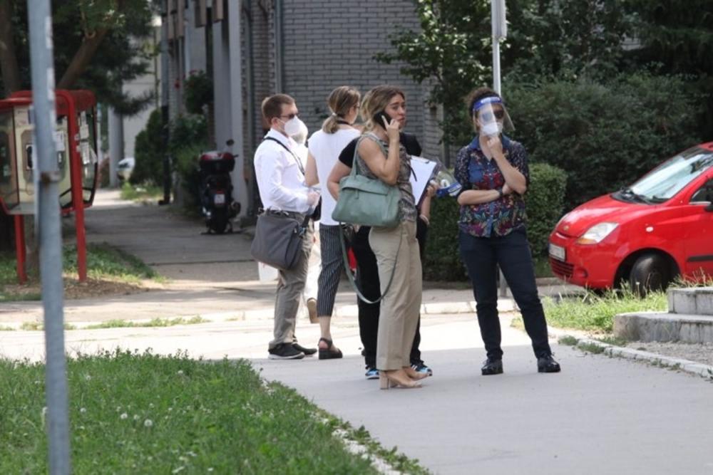 10:54h - Ispred ulaza u zgradu u Vespučijevoj 24 trenutno su desetoro civilnih policajaca i dvojica vojnih, četvoro službenika izvršiteljske kancelarije i dve socijalne radnice.