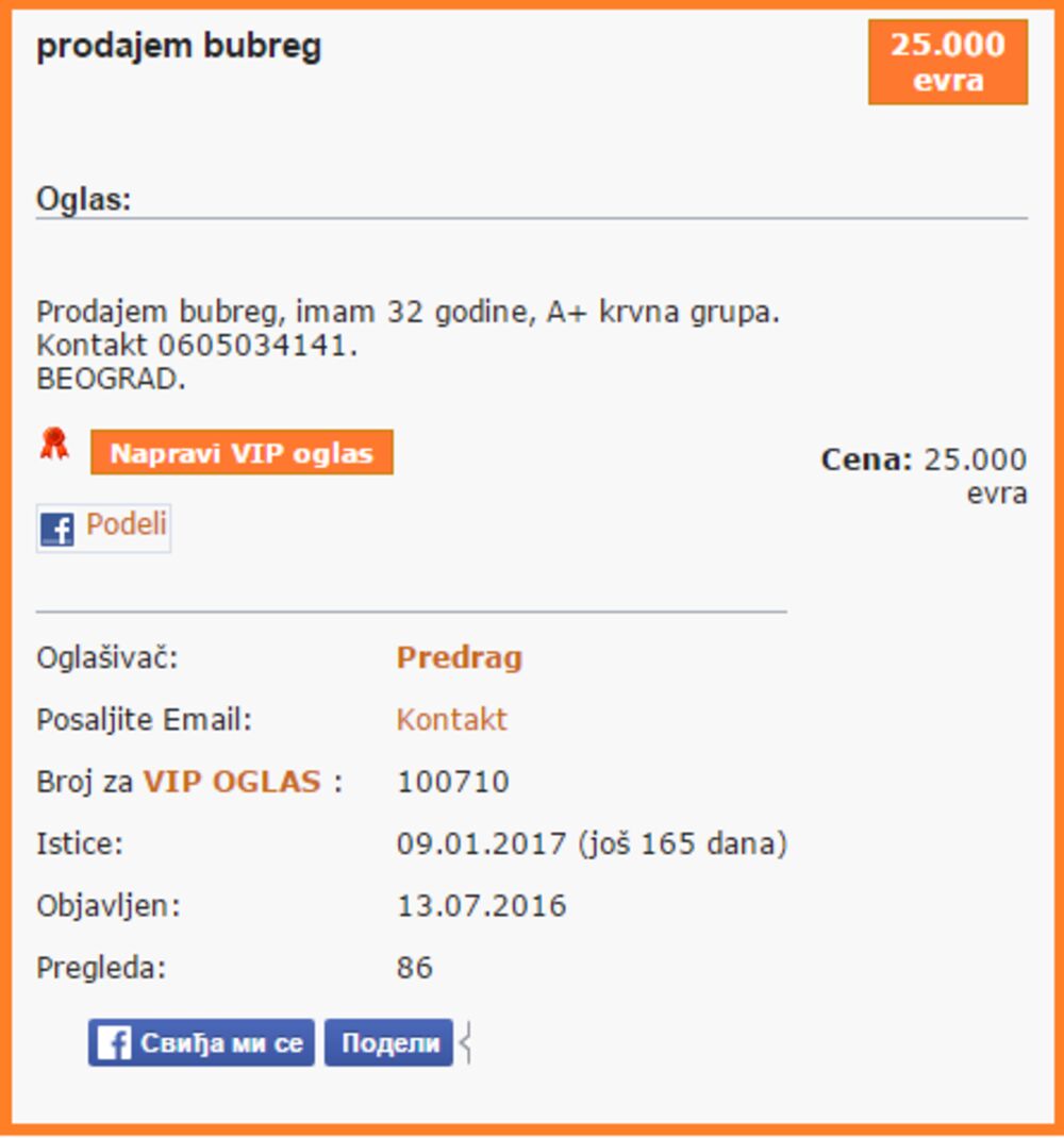 Očajni Srbi prodaju bubrege na Internetu! Organe nude vrhunski sportista, otac bez keša... (FOTO)