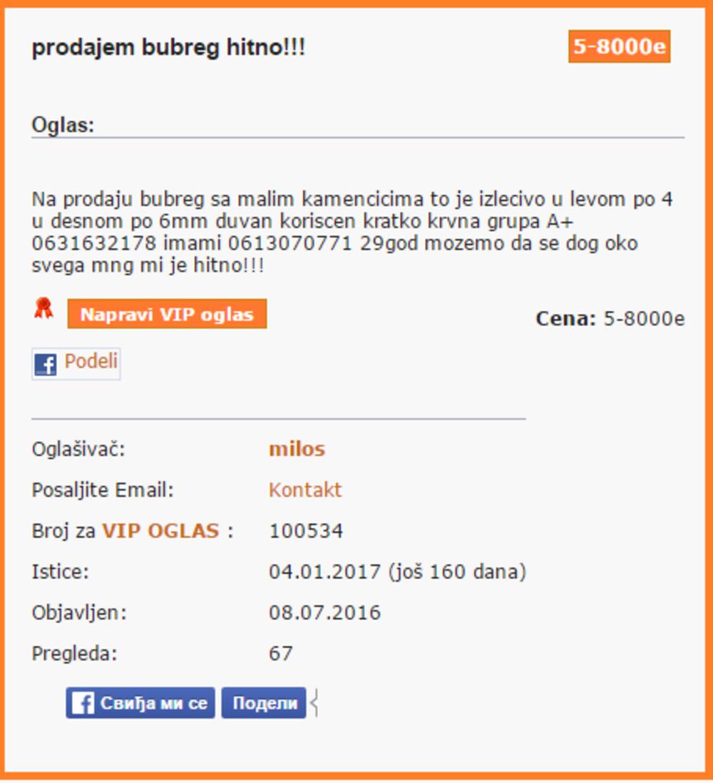 Očajni Srbi prodaju bubrege na Internetu! Organe nude vrhunski sportista, otac bez keša... (FOTO)
