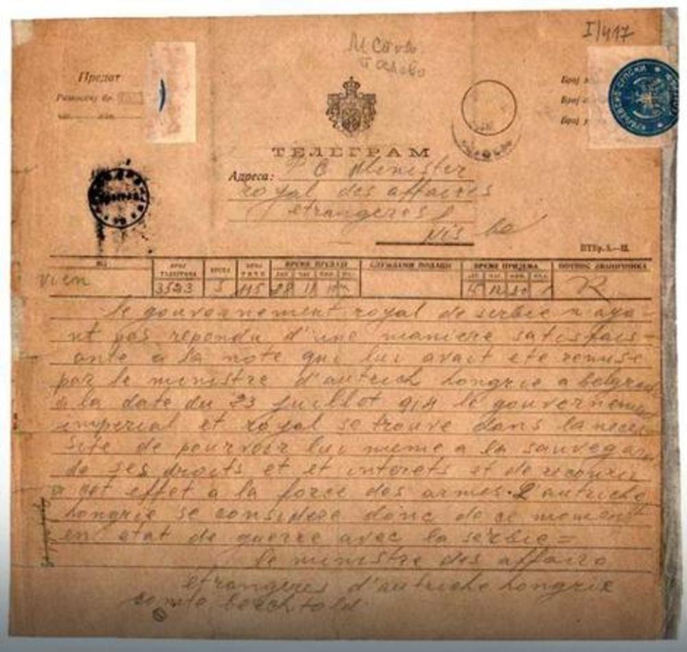 Pre tačno 102. godine, počeo je Prvi svetski rat. Austrougarska je 28. jula 1914. godine poslala Srbiji telegram u kom joj je objavila rat.
