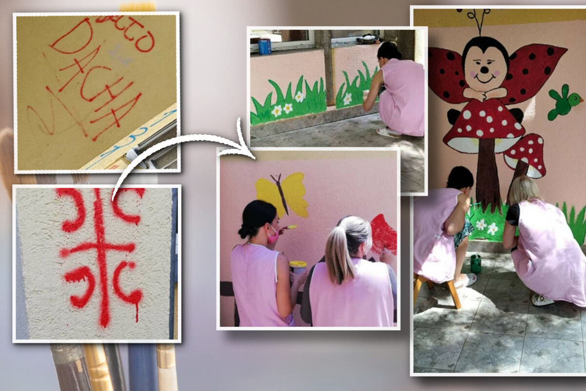 Grafiti sa nacističkim oznakama i potpisima ružili su zgradu vrtića ,,Slavuj” u Nišu. S obzirom na to da bi vrtić trebalo da predstavlja oazu mira i sreće, vaspitačice i vaspitači ove ustanove su odlučili da stvar uzmu u svoje ruke.