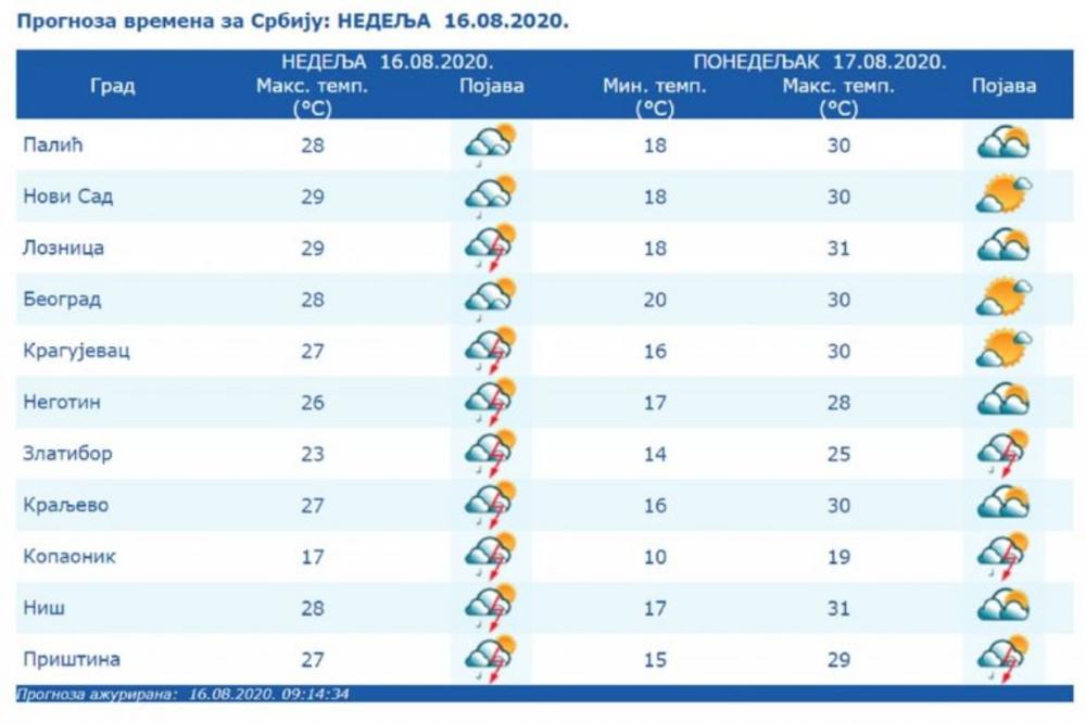 I u Beogradu će biti promenljivo oblačno, sparno, u prvom delu dana povremeno sa kišom ili pljuskovima sa grmljavinom, posle podne sa dužim periodima sunčanog vremena.