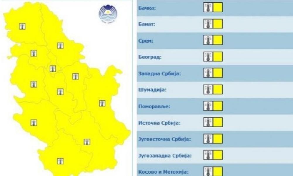 Zbog nešto više temperature nego prethodnih dana na snazi je žuti meteoalarm u celoj Srbiji.