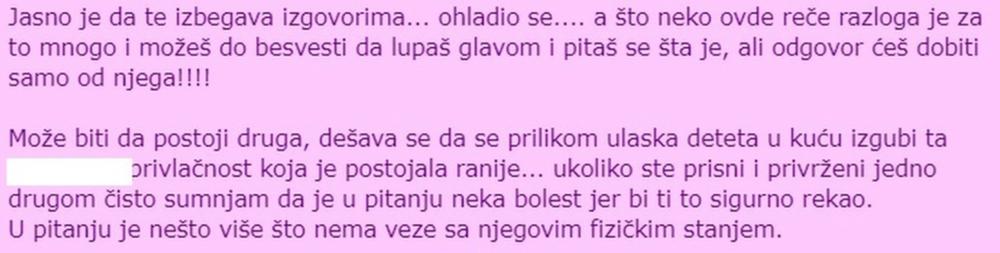 Ovu temu je pokrenula jedna Sprkinja jer je bila jako zbunjena zašto posle porođaja njen muž ne želi da ima odnose sa njom.