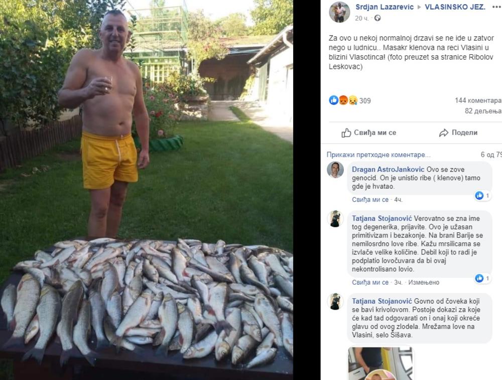 U Fejsbuk grupi, "Vlasinko jezero" pojavila se fotografija čoveka koji se javno pohvalio koliko je ribe upecao.