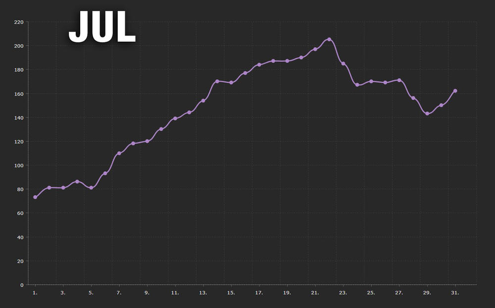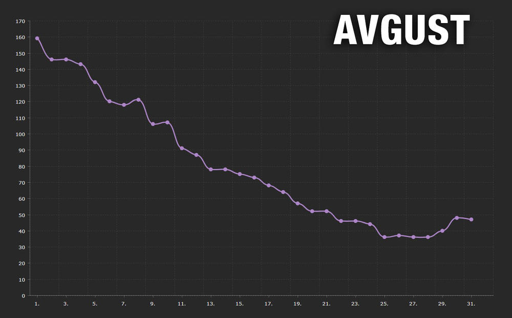 Iako je nakon toga počeo postepeno da se smanjuje, do kraja meseca je bio trocifren, tako da smo 31. jula imali 162 osobe na respiratorima u zemlji.