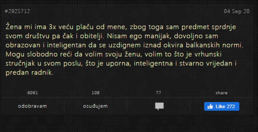 Na sajtu Ispovesti.com jedan čovek, čija žena zarađuje mnogo više od njega, otvorio je dušu.