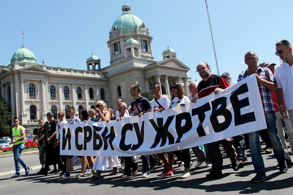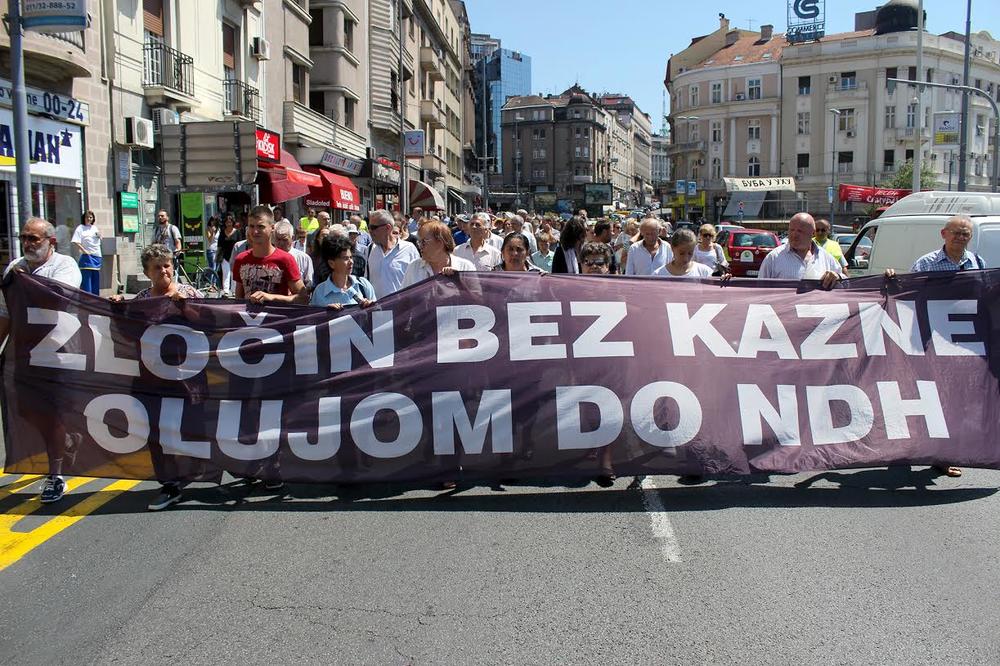 Okupljeni nose transparente "I Srbi su žrtve" i "Zločin bez kazne - Olujom do NDH".