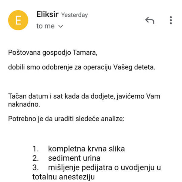 Operacija je u međuvremenu obavljena i sve je proteklo u najboljem redu.