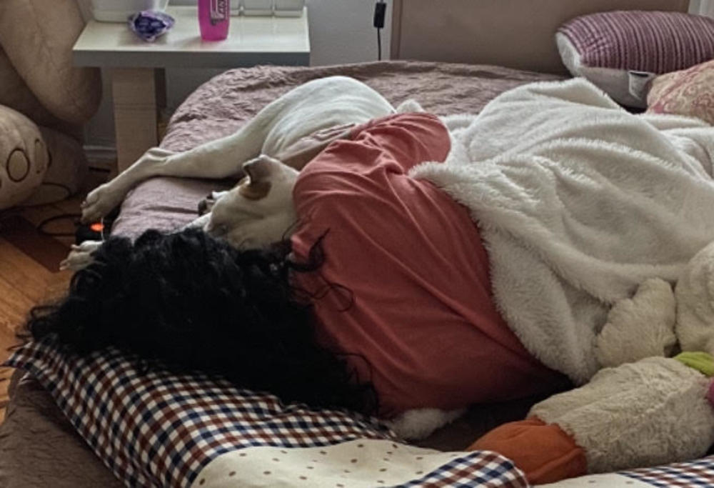 Kada je mama Regina operisana, ležala je stalno pored nje. Popne se u krevet, nasloni joj glavu na nogu, mnogo je oprezna, ne prilazi rani, ali oseća da je mama bolesna i da joj treba drug koji će joj pomoći da zaboravi na bolove.