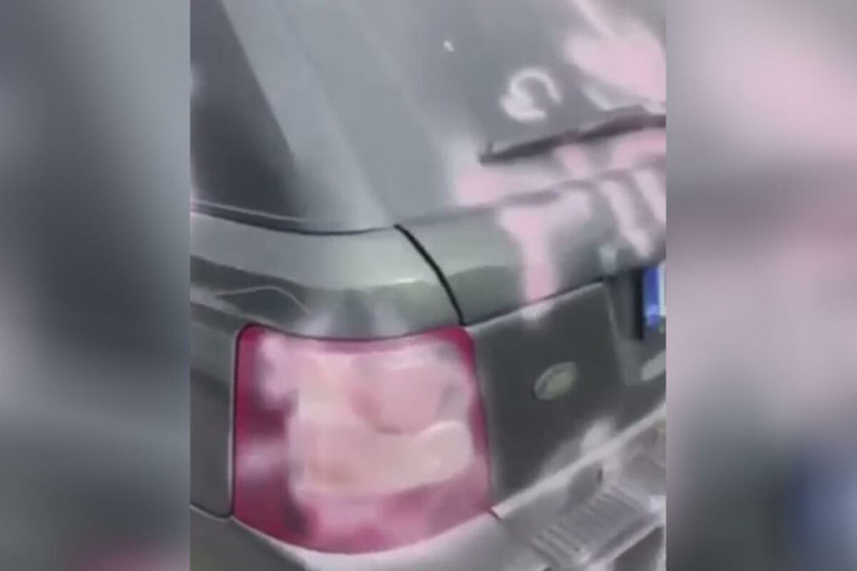Džip "range rover" unakažen je ružičastim sprejem, kojim su ispisane pogrdne poruke njegovom vlasniku