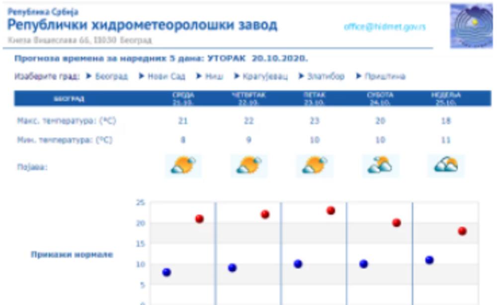Predviđa se da će u narednih pet dana živa na termometru biti oko dvadesetok podeoka, a da će jutarnja temperatura biti nešto prijatnijih 10 stepeni.