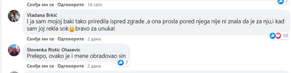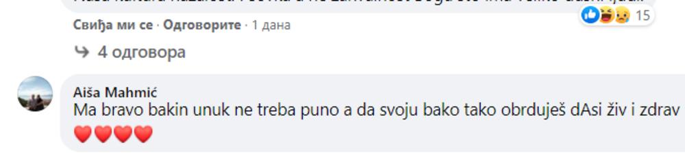 "Ovo stvarno nema nigde, ovo je prelepo nešto, ljubi te baka tvoja. Bog ti dao zdravlja gde god da pođeš", zahvaljiva se ona momku koji ju pitao da li želi da isproba bicikl.