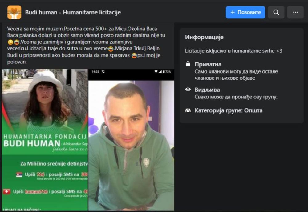 Dakle, postavila je večeru sa svojim mužem na licitaciju za pomoć Milici, podstakla neke da pošalju SMS za pomoć detetu, nekima zagolicala maštu, isprovocirala malo šale i podigla početnu cenu za oko tri puta.