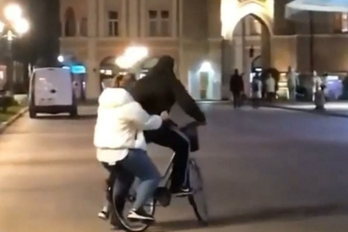 Nakon što je mladić seo na sic bicikla, iza njega je na partreger sela i devojka. Iako je odmah bilo vidljivo da će se bicikl malo teže kretati od njihove težine, ipak su odlučili da probaju. Međutim, svega nekoliko metara dalje, točak nije izdržao, te mu se ram iskrivio. Nakon početnog iznenađenja, oboje su počeli da se smeju u čemu im se pridružila i devojka koja je sve dokumentovala kamerom telefona.