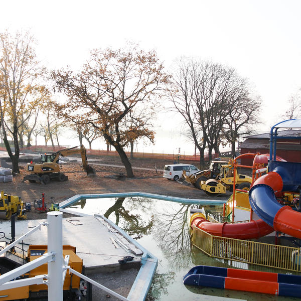 Naime, i sada svi koji prolaze šetalištem duž obale Palićkog jezera, ne mogu a da ne primete u okolini Muškog štranda visoke tobogane koji se „prepliću“ na gradilištu budućeg akva parka i velnes centra.