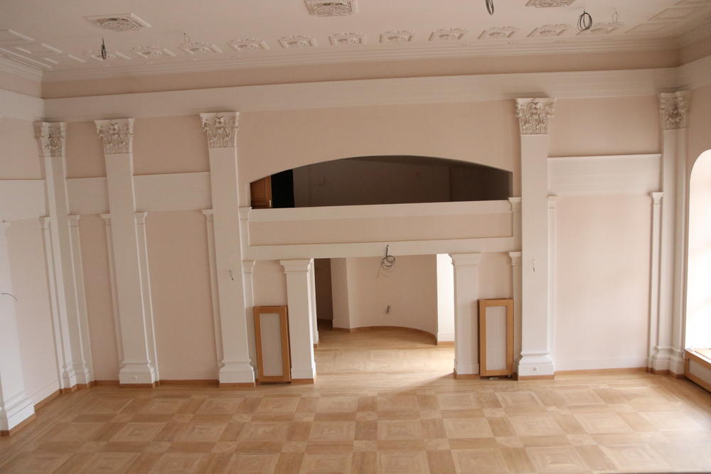 Prednji deo zaštićen je, ima svoju balsku dvoranu sa balkonom, dok postoji i jedan prostor za galeriju.