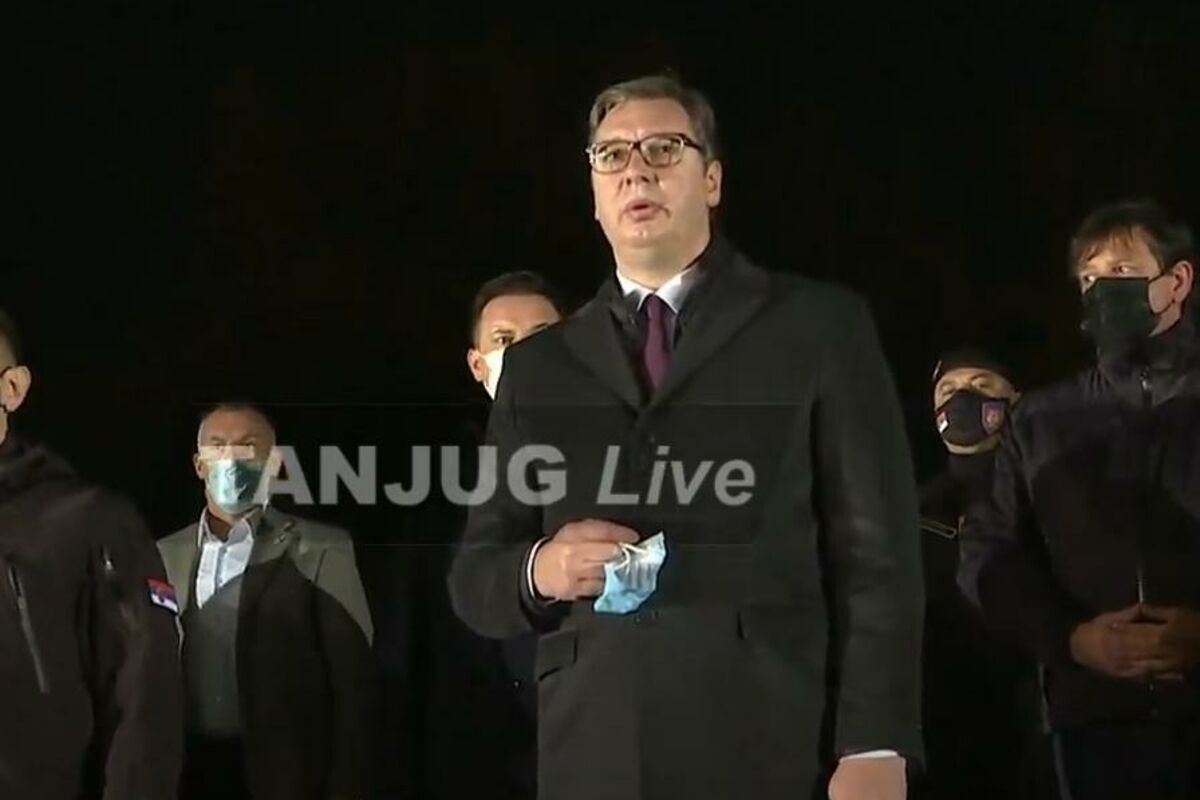 Predsednik Aleksandar Vučić prisustvuje antiterorističkoj taktičko-pokaznoj vežbi "Obruč 2020" ispred Palate "Srbija" u Beogradu.