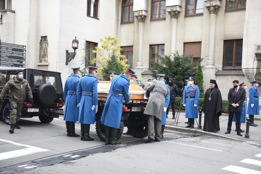 Kovčeg s telom patrijarha Irineja stigao je ispred zgrade Patrijaršije SPC oko 8 i 20 u koloni vojnih vozila.
