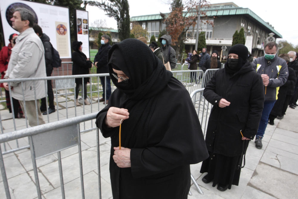 Građani mirno, u koloni ulaze u hram Svetog Save i na nekoliko metara oo kovčega odaju poštu patrijarhu Irineju, nakon čega u drugoj koloni izlaze.
