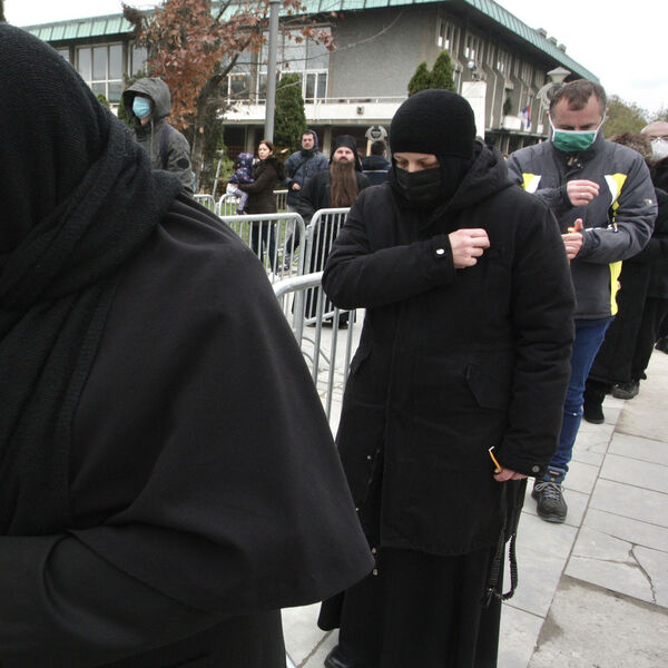 Vernici u suzama ispraćaju patrijarha, a zbog epidemioloških mera ne mogu da celivaju ni patrijarha, ni kovčeg.