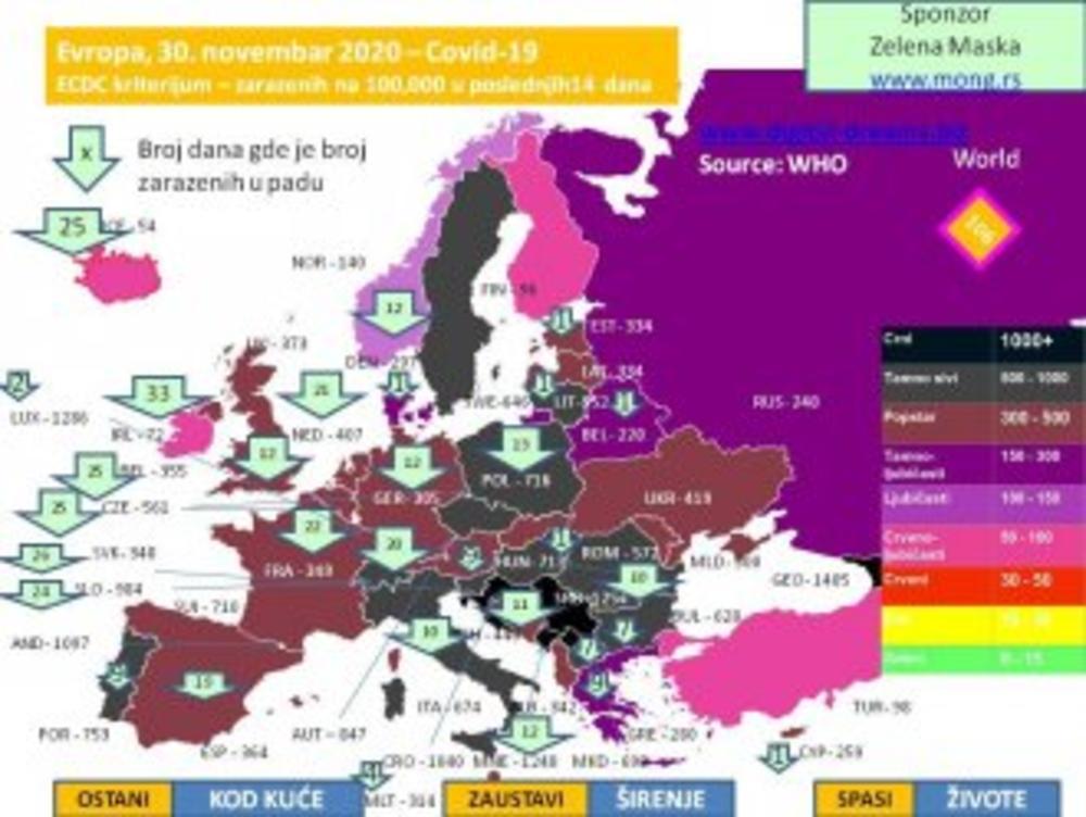 Trenutno smo uz Crnu Goru, druga zemlja u Evropi sa najlošijim pokazateljima. Oni koji nisu verovali u kovid 19 odneli su prevagu nad ostalima. Bilo ih je manje, a sada se zaražavaju svi od reda. Broj od 1.254 zaraženih na 100.000 stanovnika u prethodnih 14 dana - ECDC indeks - drugi je najgori u Evropi.