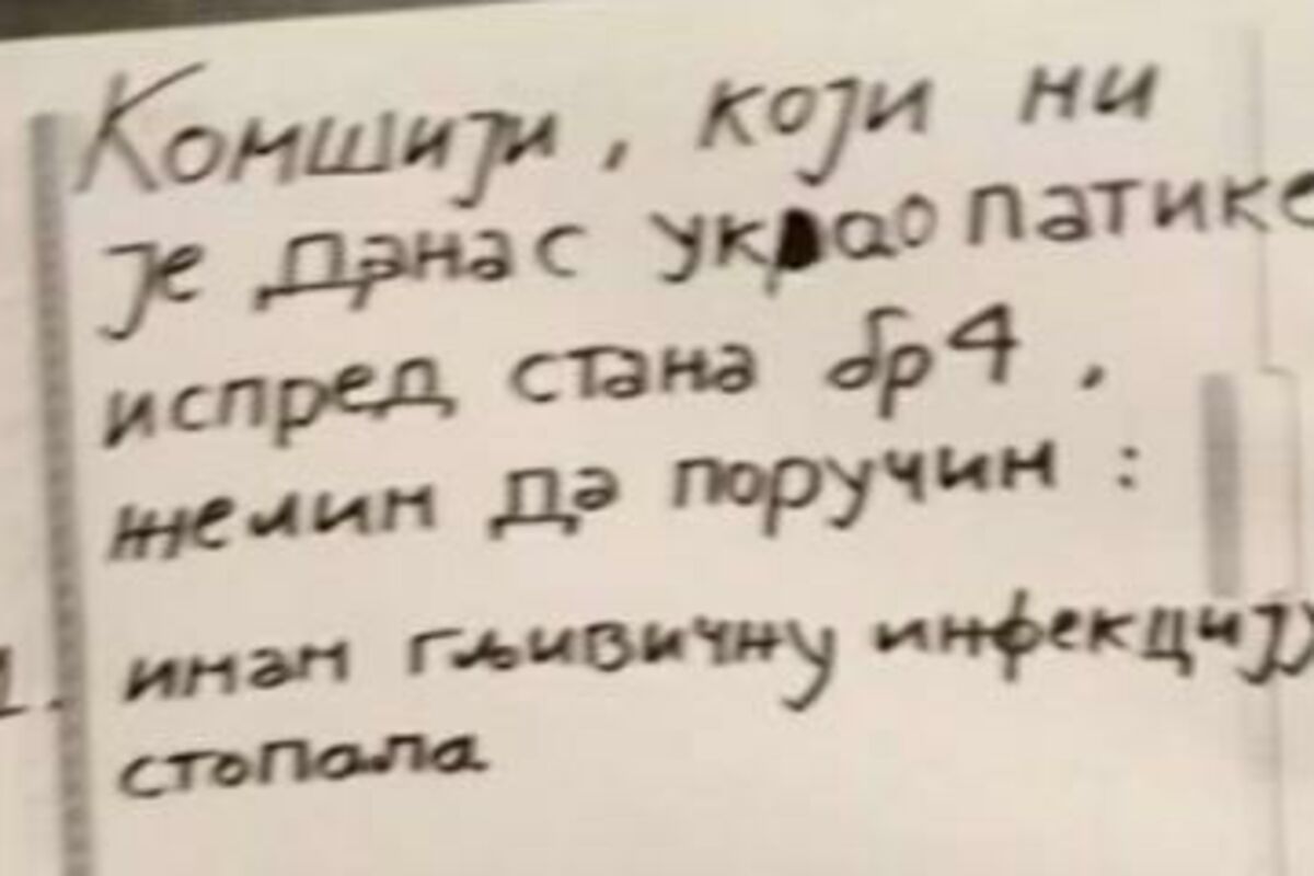 On kaže da mu je neko ukrao patike koje su bile ispred stana, ali je želeo da izbegne sukob. Međutim, čini se da je komšija lopov mnogo gore prošao: