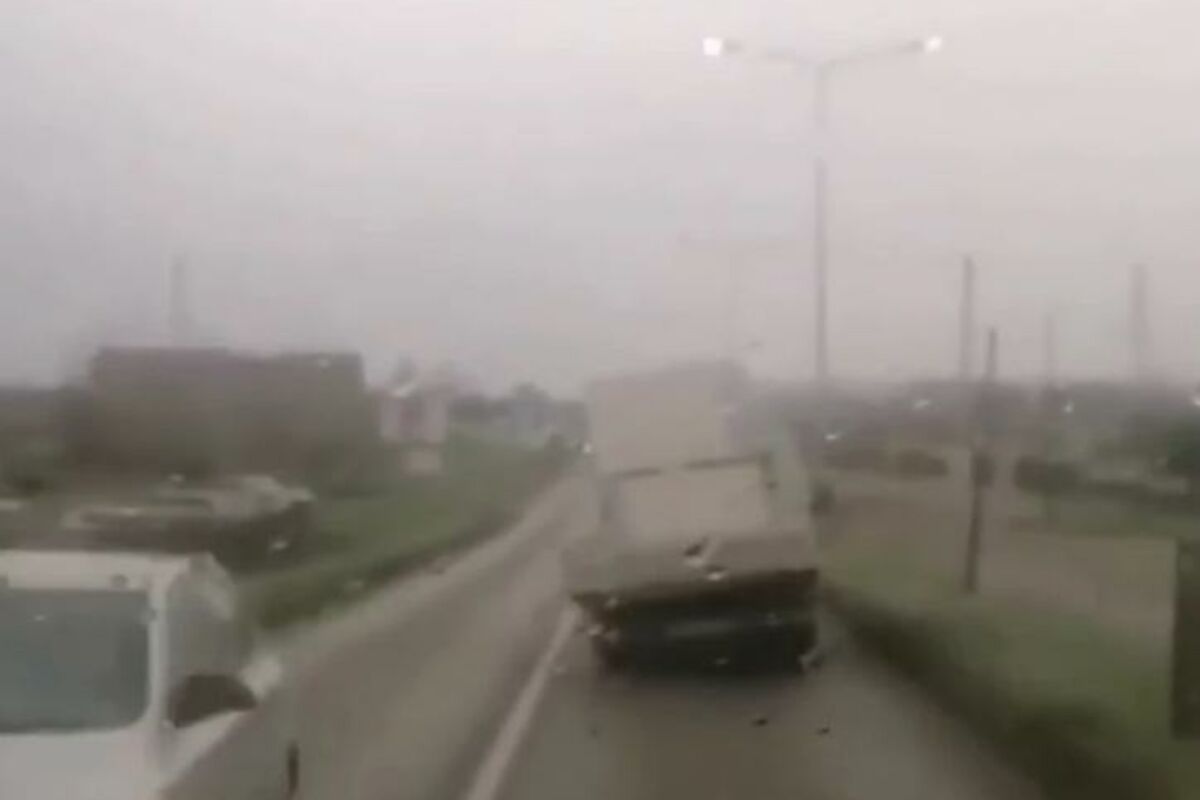Na Rumenačkom putu u Novom Sadu snimljen je upozoravajući video. Na njemu se vidi natovareno vozilo koje krivuda po kolovozu usled jakih udara košave.