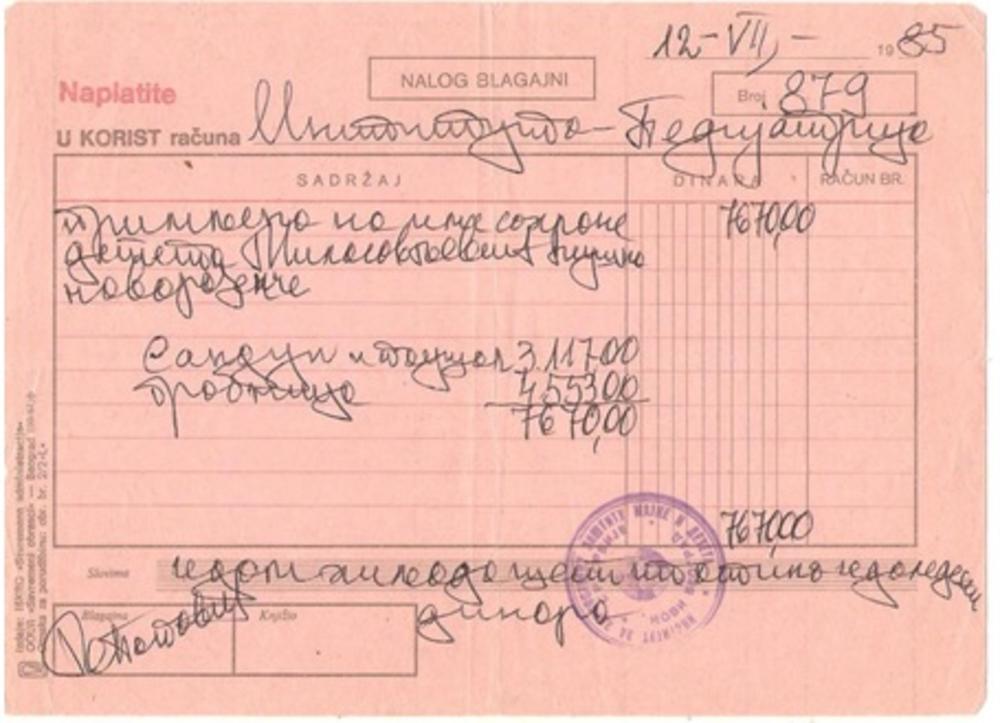 Na ime troškova grobnog mesta, sanduka i paušala naplaćeno nam je tadašnjih 7.670 dinara.