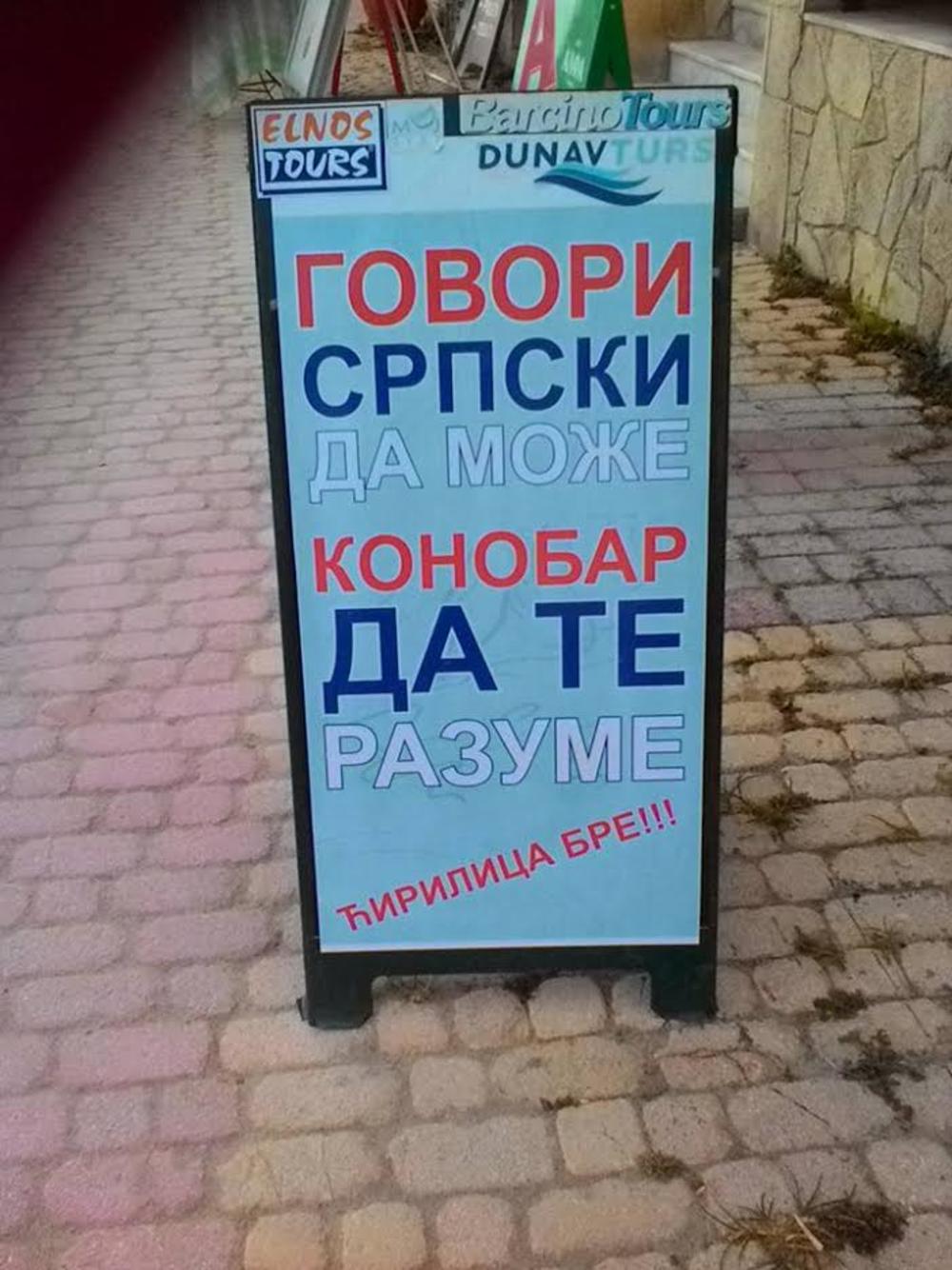 Sudeći po fotografiji, Srbiju isrpski jezik promovišu u Grčkoj veoma! Da bismo se razumeli, naravno!
