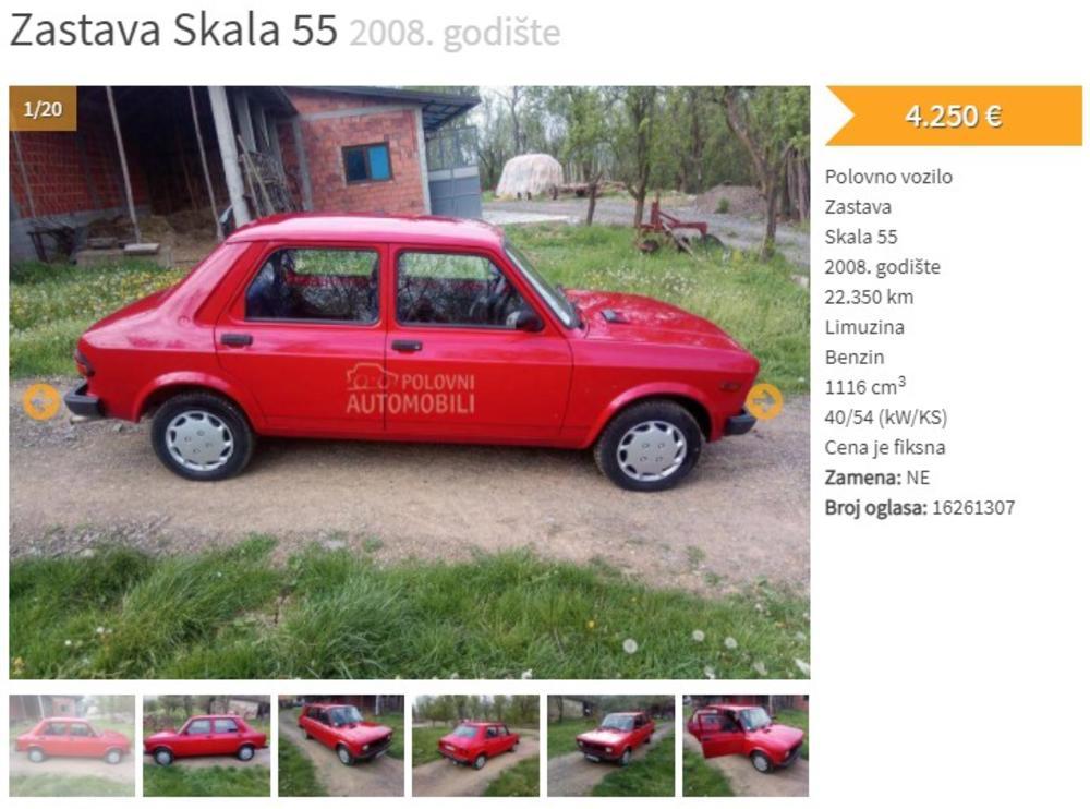 Prodavac svog lepotana - zastava skalu 55 u jarko crvenoj boji - ceni čak 4.250 evra! Čak je i napisao da cena nije greška i da ga ljudi ne zivkaju za džabe jer je auto u fabričkom stanju.