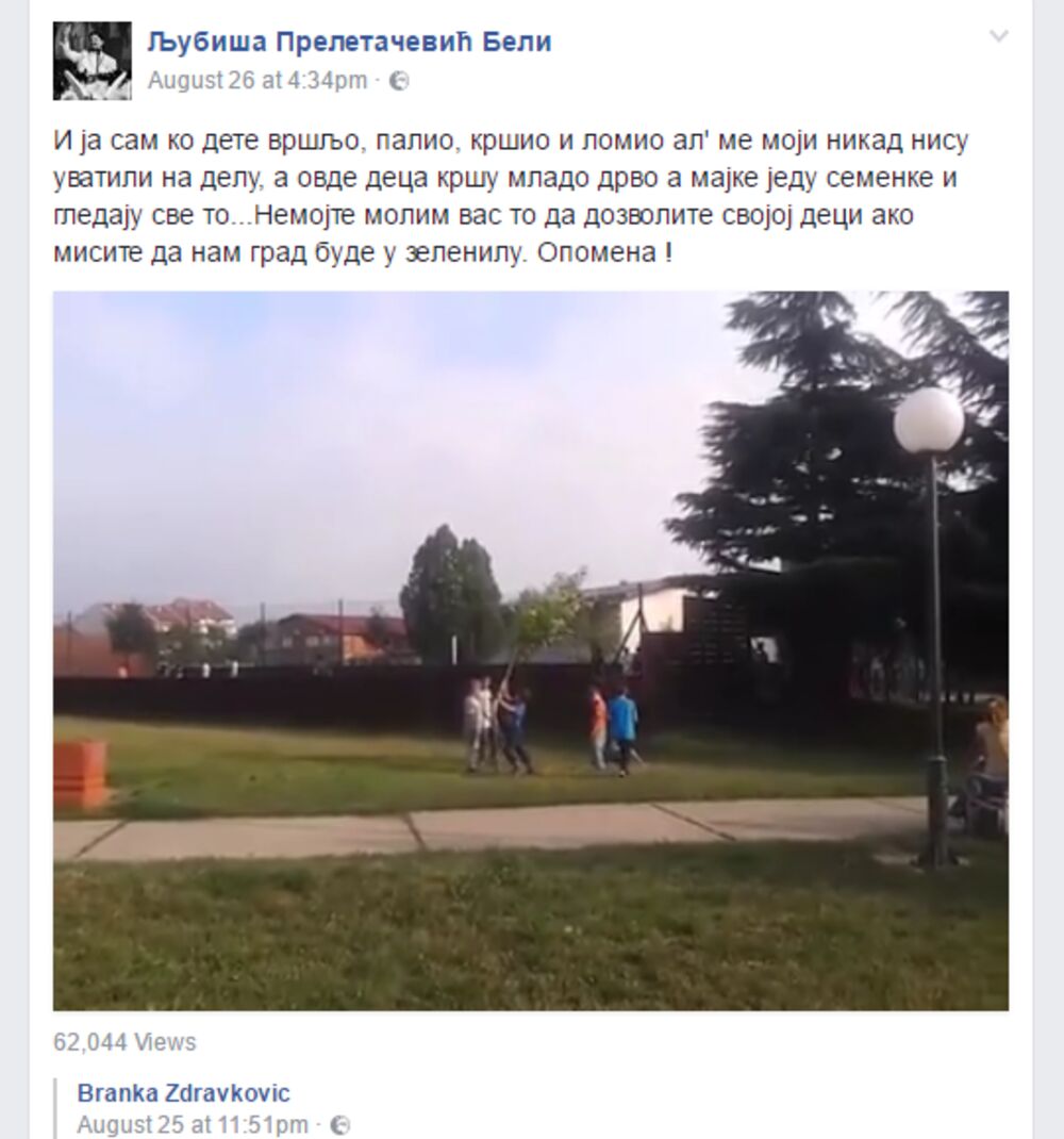 "Hvala Belom sto je ovo serovao I sto ce zahvaljujuci tome mnogi imati priliku da vide kako danas izgleda zabava dece predskolskog uzrasta. Davno su prosla vremena kada su se decaci igrali klikerima :(", "Tužno ružno. ...", "Mamama po samar jer ga izgleda na vreme nisu dobile! Ovi klinci sad pred ocima svojih roditelja lome drvo, pitanje je sta ce raditi kad porastu!?" - samo su neki od komentara.