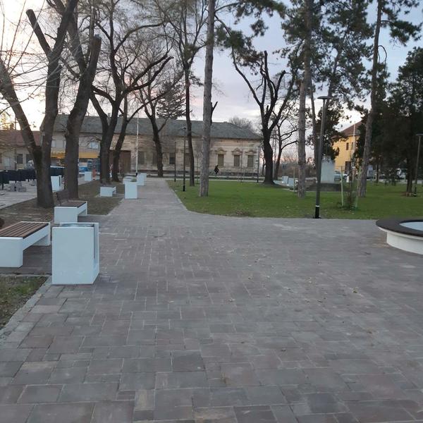 Realizacija projekta obuhvata radove na uređenju platoa ispred gradske bibliotekte, uređenje pešačkih staza, izgradnju novih parking mesta, popločavanje rekonstruisane saobraćajnice kamenim kockama, novu javnu rasvetu, uređenje zelenih površina, postavljanje urbanog mobilijara i postavljanje novih pijačnih tezgi. Centralno mesto zauzima skulptura “Rodina gnezda” – simbola naselja Kovilj.