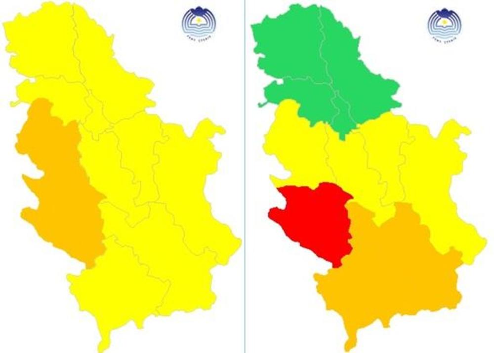 Ponegde se očekuju i kratkotrajne vremenske nepogode sa gradom, upozorili su iz Republičkog hidrometeorološkog zavoda.