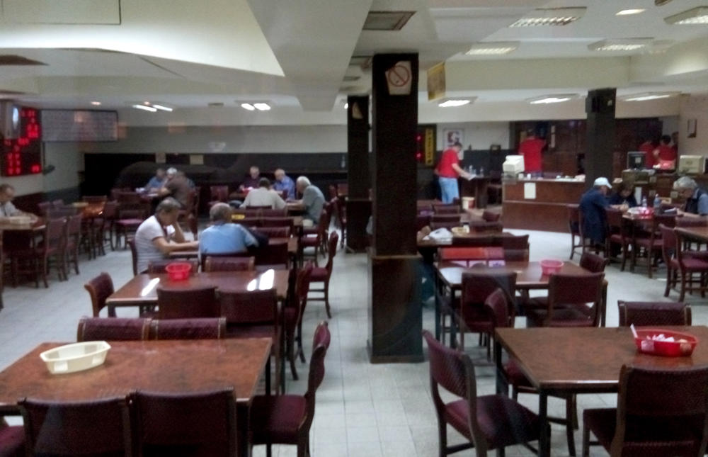 Dokaz tome je zadimnjena prostorija, ispod nivoa ulice, čiji ulaz znaju samo iskusni znalci. Krcata je. Puna kao oko. Već oko pola tri, kad počinje ova zabava prostorija ove "old skul" kockarnice već je puna.
