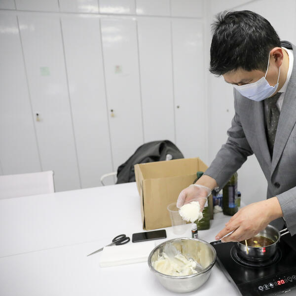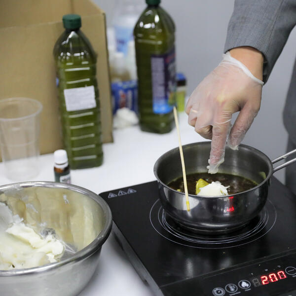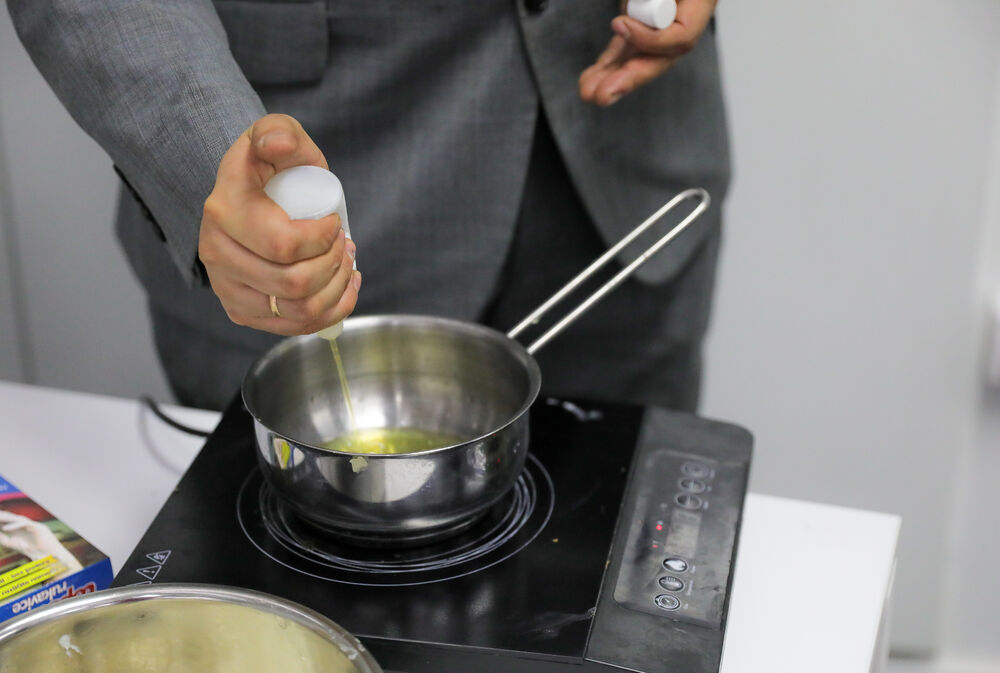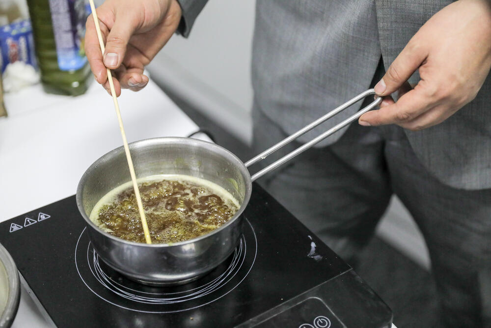 Zatim je dodao vosak, a temperaturu povećao na 60 stepeni i mešao smesu.