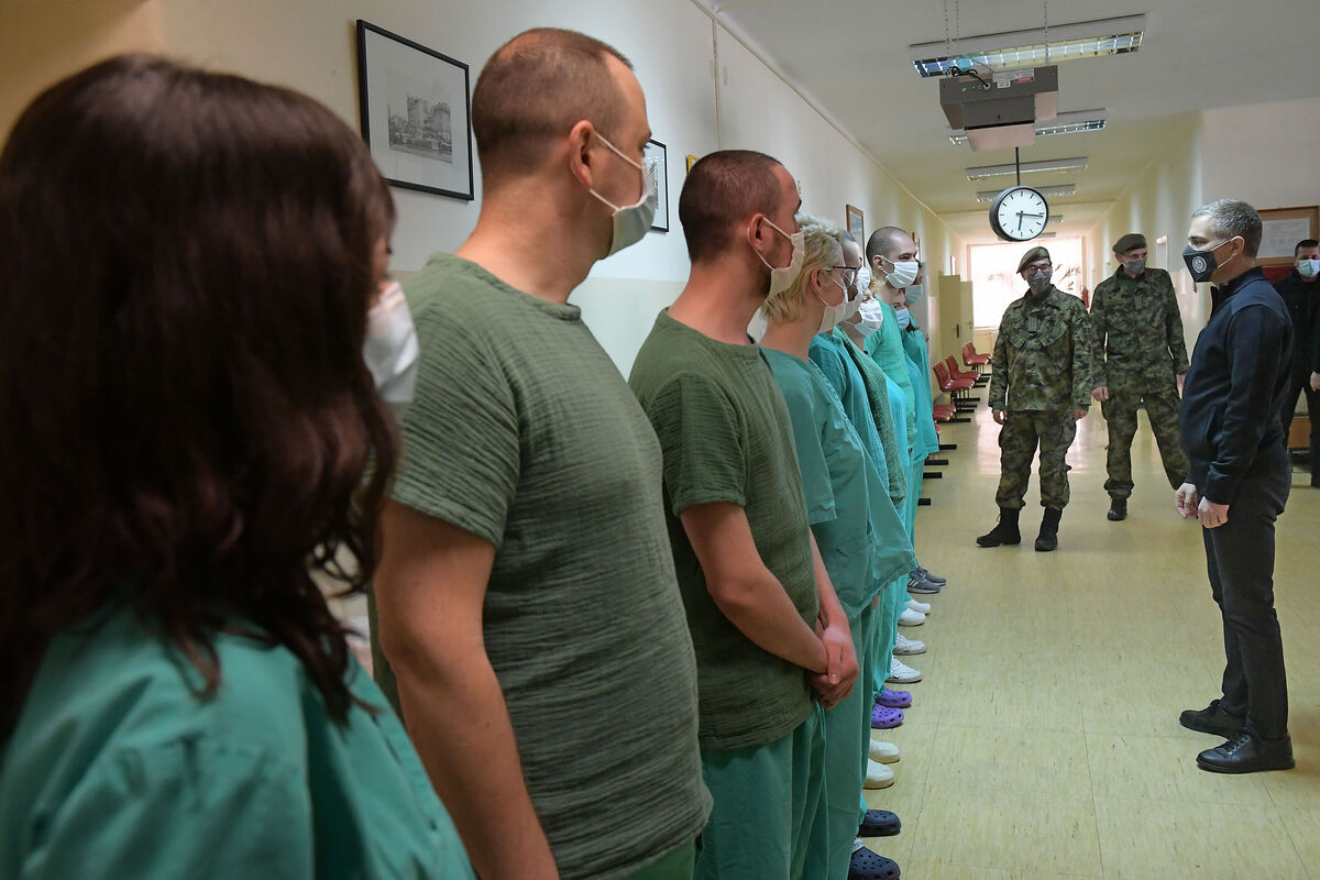 Potpredsednik Vlade i ministar odbrane dr Nebojša Stefanović obišao je danas vojnu bolnicu Karaburma u kojoj se lekari i medicinsko osoblje i u ovom trenutku brinu i bore za zdravlje 84 pacijenta sa teškim simptomima kovid virusa. Stefanović se zahvalio pripadnicima vojnog zdravstva koji su angažovani u ovoj bolnici na neumornom i požrtvovanom radu i još jednom pozvao građane da se vakcinišu.