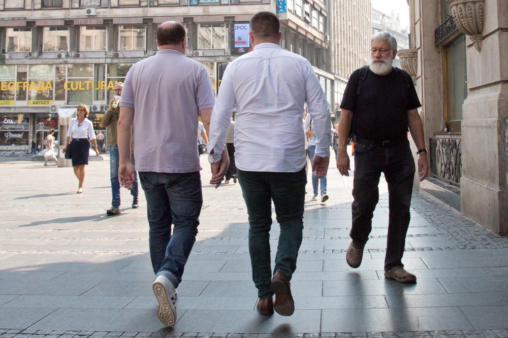 Mental note: Od sutra idem na trčanje. OK, od ponedeljka. I prelazim na pedersku hrono ishranu. Gledam Staju. On je još matoriji i ružniji nego ja. “Kako li je tek njemu, kuku”, pitam se, stežući mu ruku malo jače, da mu bude lakše. Dolazimo do sredine Kneza. Pričam mu nešto, kako bih ga opustio. Staja se meškolji, a ja vidim tad još jednog koji nas mrzi. Klinac, 20 godina max.